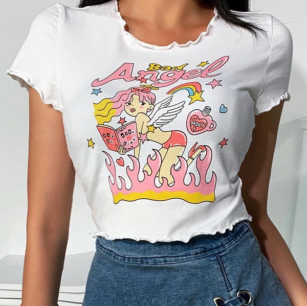 SKU: boogzel-apparel-4546418802757 Categories: 90s & VINTAGE, Aesthetics, Clothing, SOFT GIRL OUTFITS, Y2K OUTFITS Tags: Angel, Bad Angel Crop Top, Boogzel, Boogzel apparel, Crop top, Cropped top, White crop top
