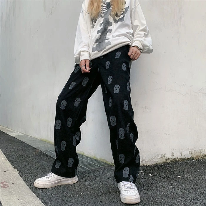 SKU: boogzel-apparel-7659820155139 Categories: Aesthetics, BOTTOMS, Clothing, EMO CLOTHES, GRUNGE CLOTHES, PANTS & TROUSERS Tags: Balaclava Print Wide Leg Pants, Black pants, Boogzel apparel, Egirl, Grunge, Grunge jeans, Wide jeans, Y2k pants