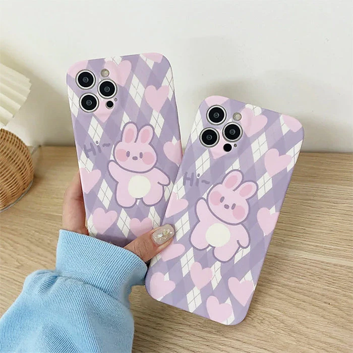 Keep your phone looking cute with this Bunny Lilac Argyle iPhone Case! 🐰💜