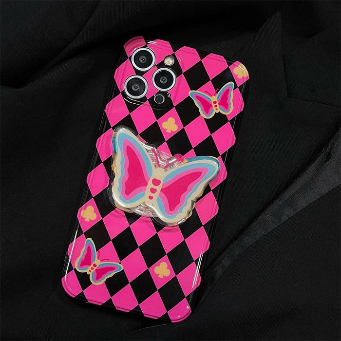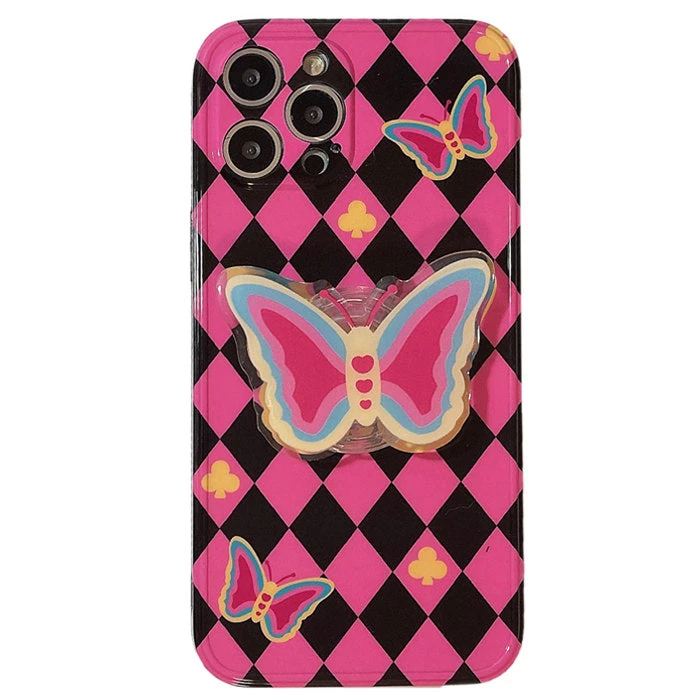 Boogzel Apparel Butterfly Argyle Pattern IPhone Case EMO CLOTHES