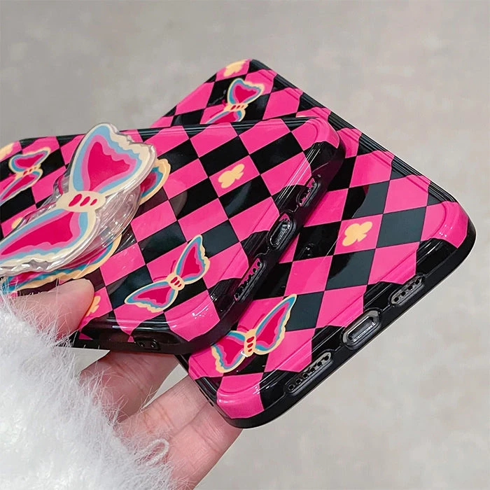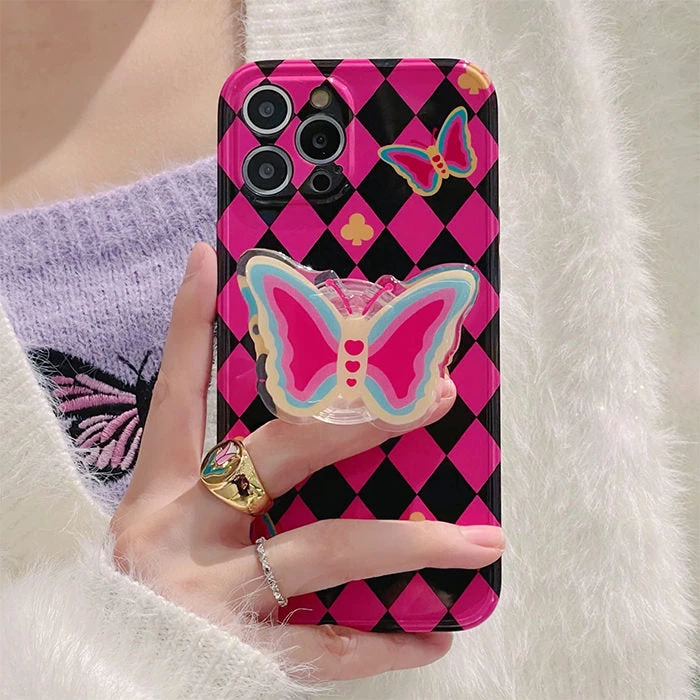 SKU: boogzel-apparel-7647244091651 Categories: Accessories, Aesthetics, BUTTERFLY AESTHETIC, EMO CLOTHES, IPHONE CASES Tags: Argyle, Black and pink, Boogzel, Boogzel apparel, Butterfly, Butterfly Argyle Pattern iPhone Case, Phone grip, Pop socket