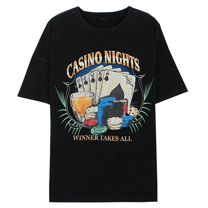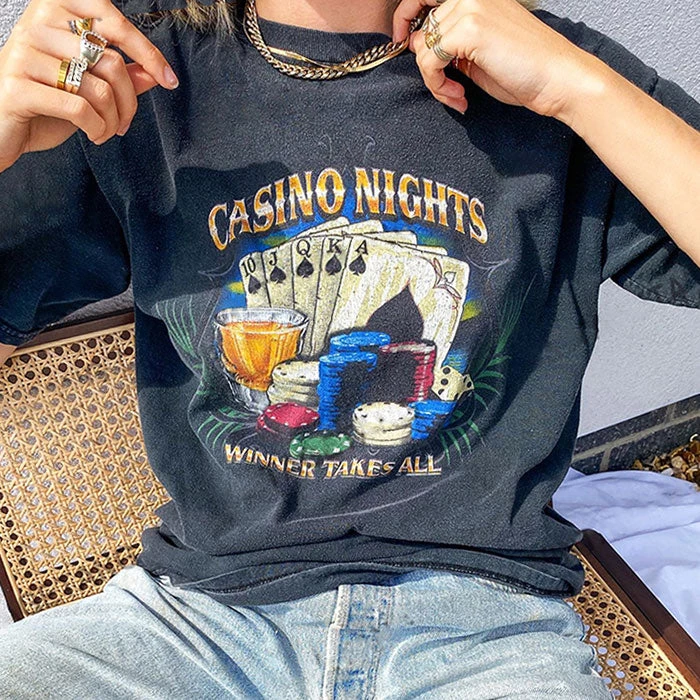Casino Nights T-Shirt cuz you just hit the jackpot bb! Get that millionaire money hunty in this tee that has short sleeves, a relaxed fit, and a front graphic that’ll have ya winning it all 🎰