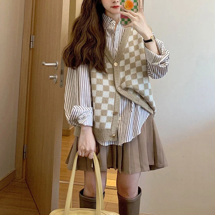 💛 Checker Button Up Sweater Vest cuz pass me the hot chocolate. Stay warm in this argyle sweater vest.