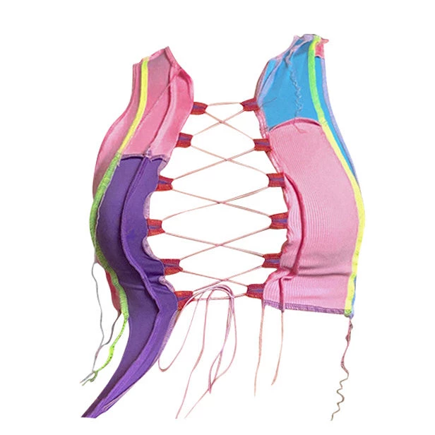 SKU: boogzel-apparel-4534965207109 Category: Clothing Tags: Boogzel, Boogzel apparel, Crop top, Cropped top, Lace up, Patchwork, Pretty in Pastel Lace Up Top