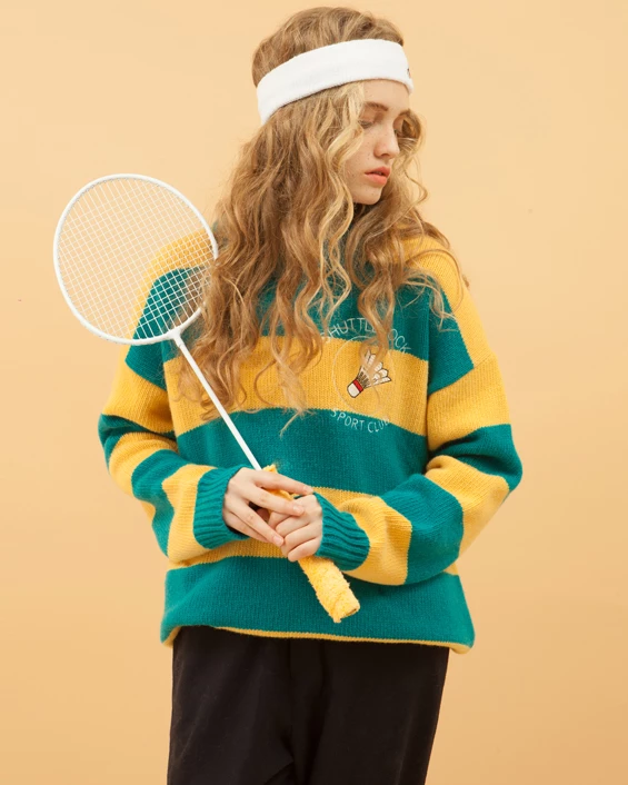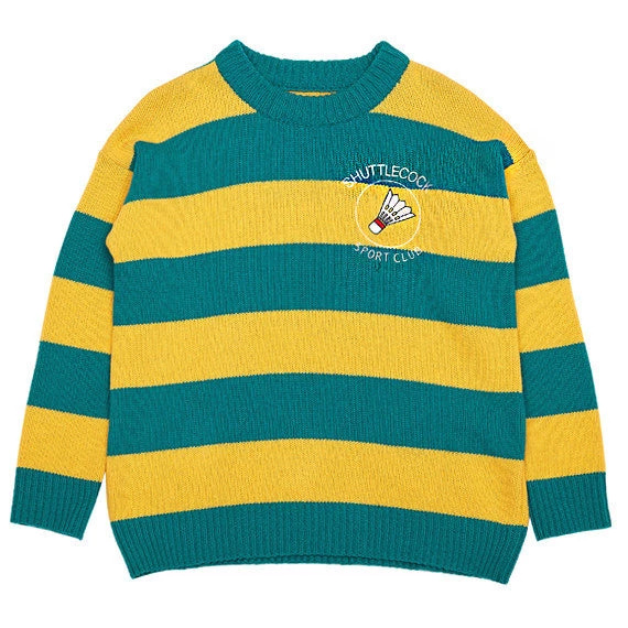 This cozy jumper features a comfy striped construction and a cute shuttlecock embroidered on the chest ![]()