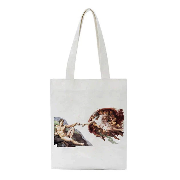 SKU: boogzel-apparel-4541646110789 Categories: Accessories, Aesthetics, BAGS & PURSES, COTTAGECORE / ARTSY Tags: Art, Canvas bag, Creazione di Adamo Shoulder Bag, Print, Shopping bag, Tote bag, White bag