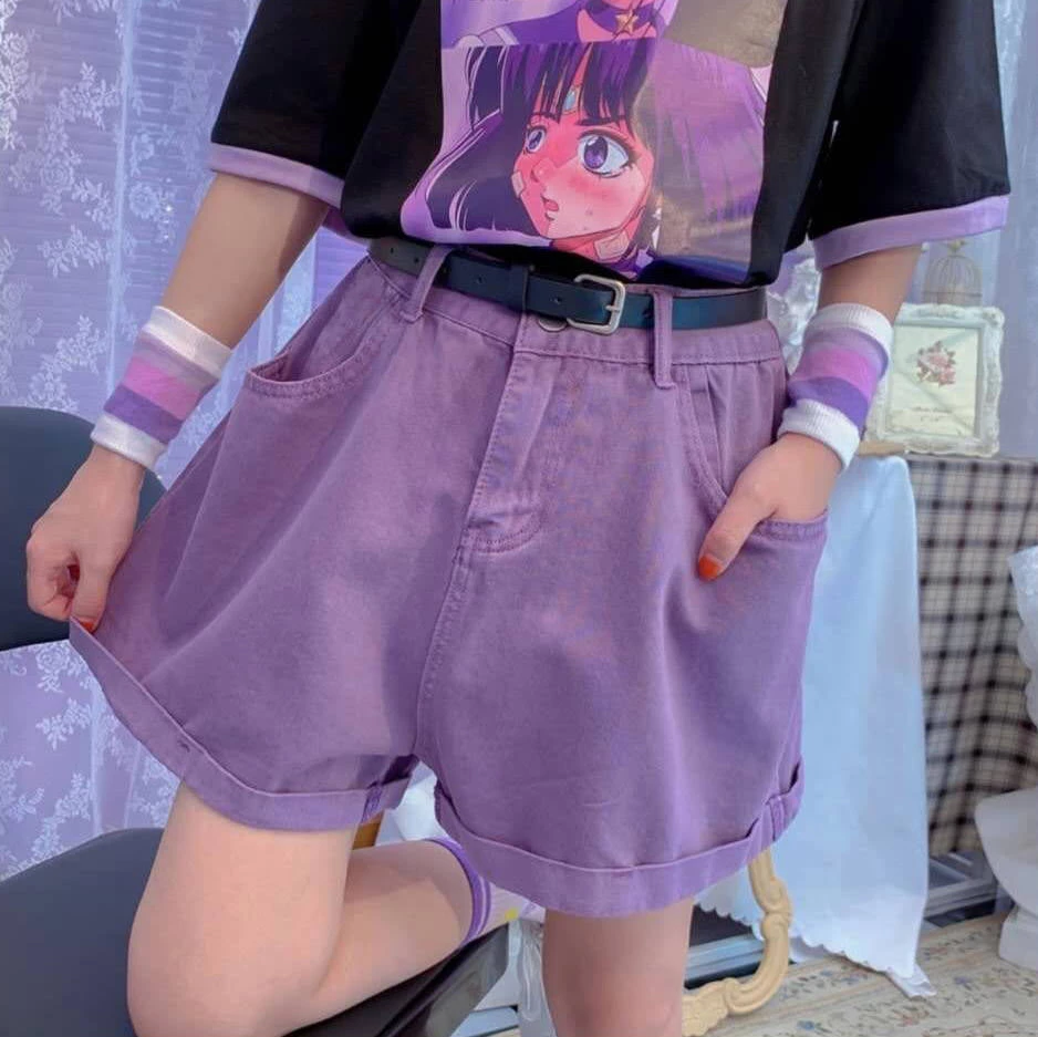 💜 High waist aesthetic denim shorts that have classic pockets, button N’ fly closure