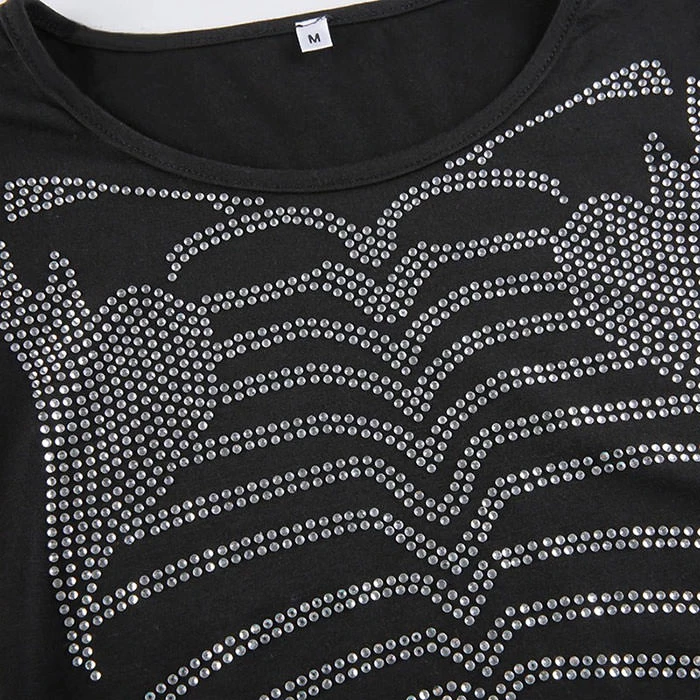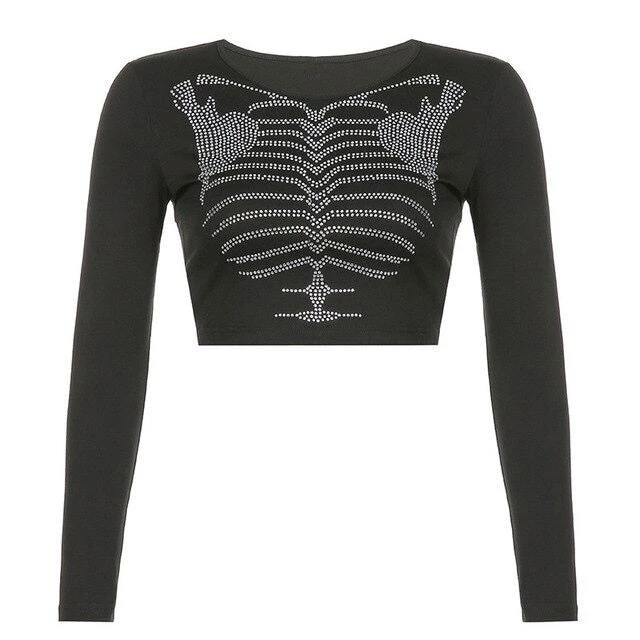 This top features a cropped fit, long sleeves and a rhinestone skeleton on the front ♡