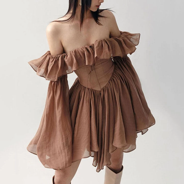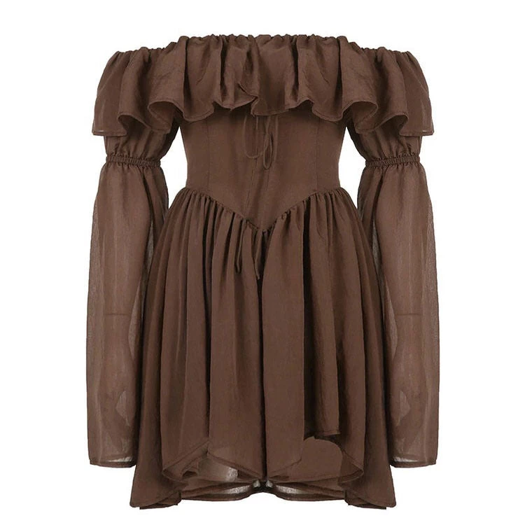 SKU: boogzel-apparel-7751764050179 Categories: Aesthetics, Clothing, FAIRY GRUNGE, FAIRYCORE, ROMPERS & DRESSES Tags: Boogzel, Boogzel apparel, Fairy grunge, Fairycore aesthetic, Fairycore dress, Long sleeve dress, Mocha Brown Mini Dress, Off shoulder