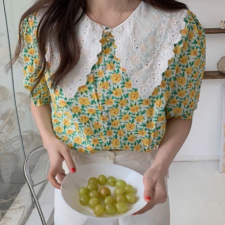 SKU: boogzel-apparel-6964273512617 Categories: AESTHETIC CLOTHES, Aesthetics, Clothing, COTTAGECORE / ARTSY Tags: Aesthetic, Blouse, Boogzel, Boogzel apparel, Chiffon, Floral Collar Shirt, Shirt, Turn down collar