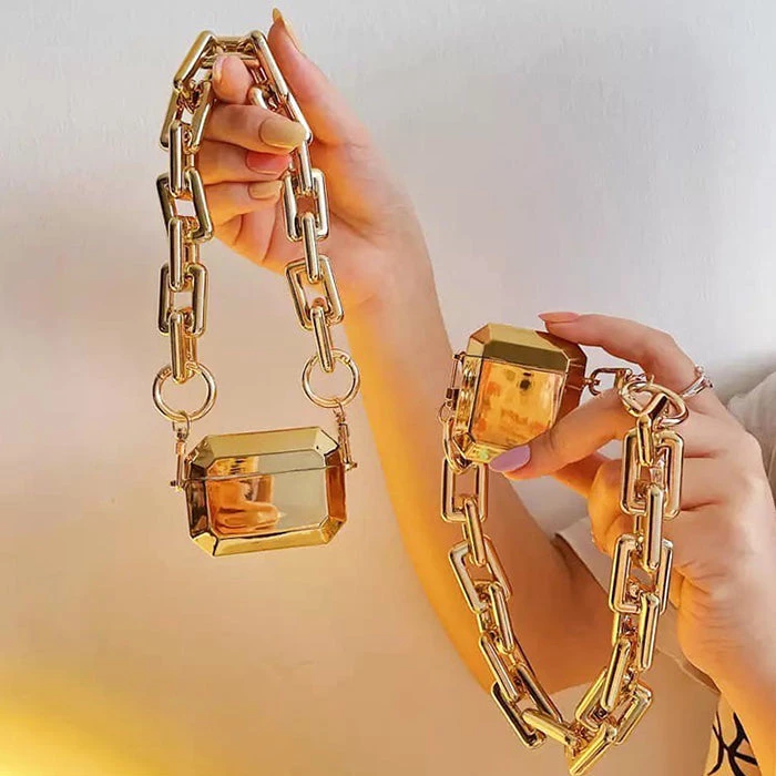 Keep your headphones looking absolutely cute with Gold Bar Chain AirPods Case! 💛