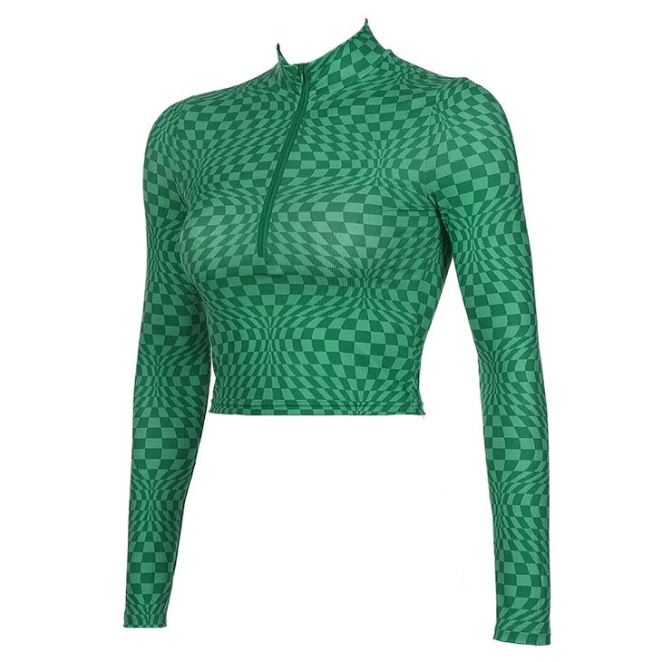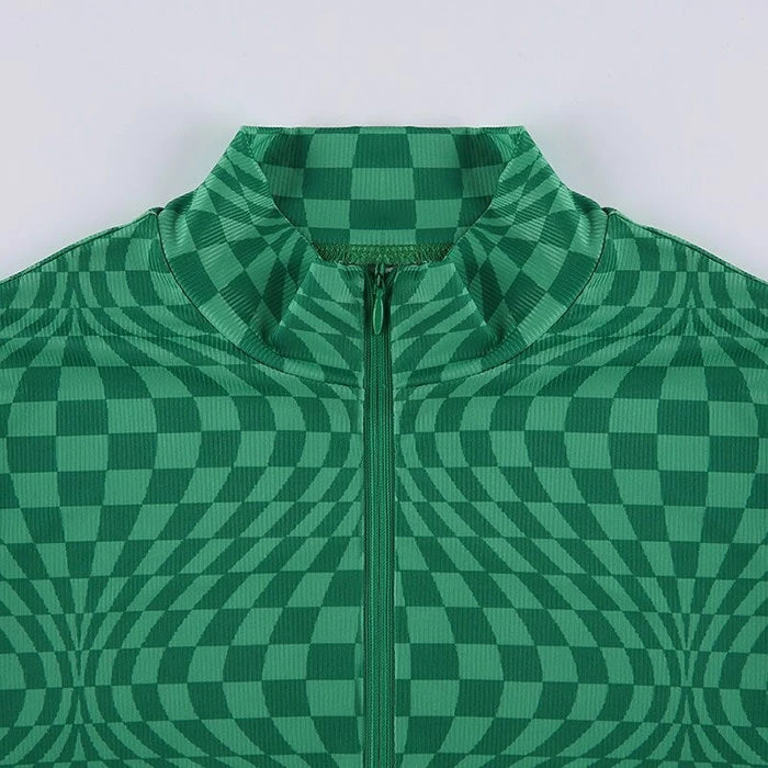 Checkered Top cuz you have no time to playyy. Cross the finish line in this zip top that has a cool checkered print all ova, a collar, and a zip closure 🏁