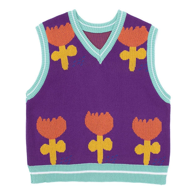 Boogzel Apparel Happy Flower Knit Vest COTTAGECORE / ARTSY