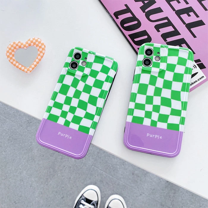 💚✨🌿 Keep your phone looking cute with this Heart Mirror Checkered iPhone Case!