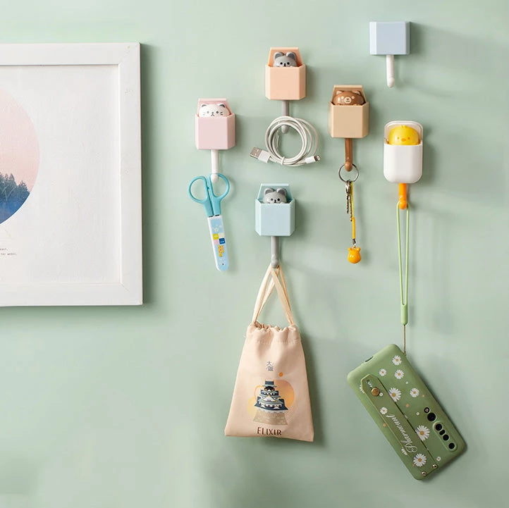 Kawaii wall hook with the kitten popping up when hook is loaded