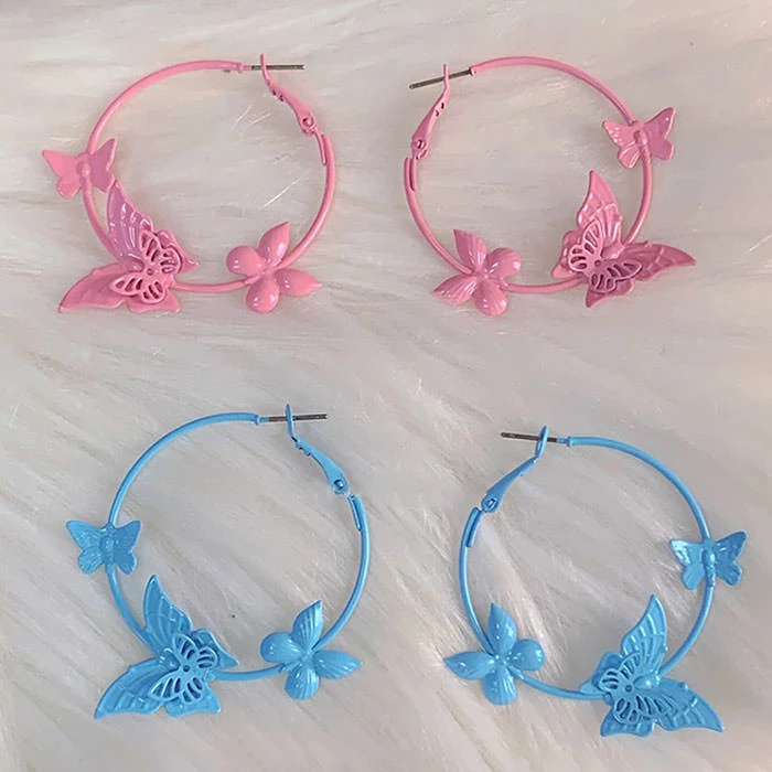 Boogzel Apparel Pastel Butterfly Hoop Earrings Y2K OUTFITS