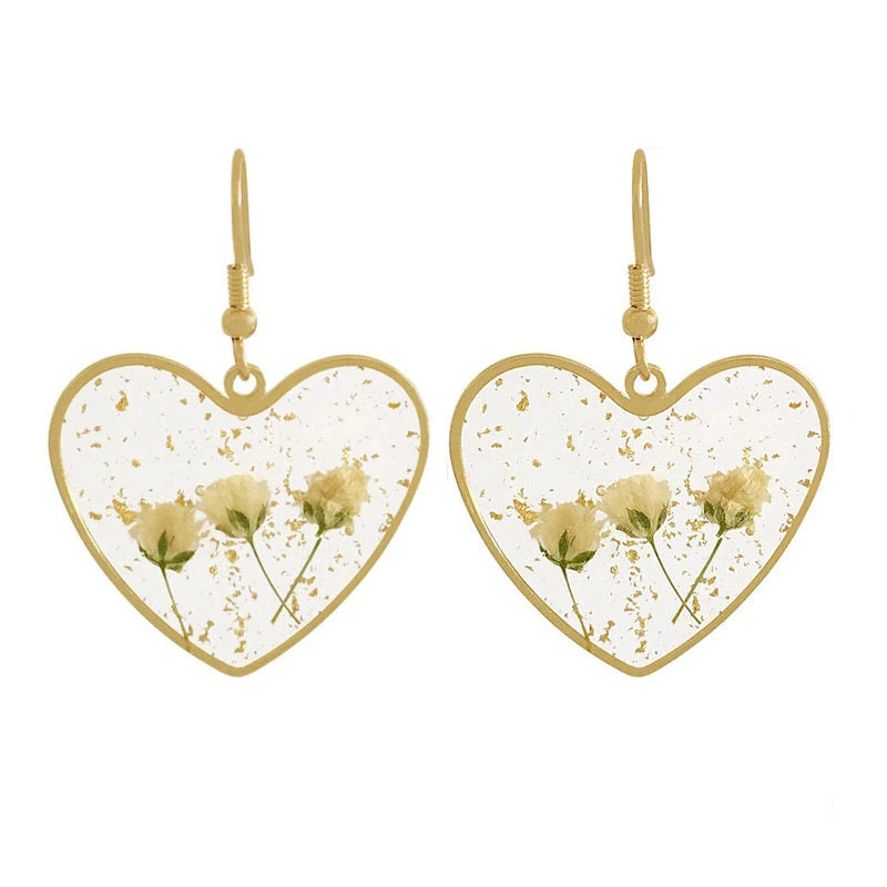 🌺 Gorgeous pressed flower heart earrings for dress up or everyday wear