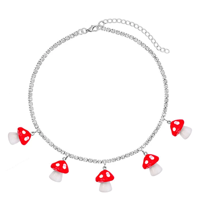 Boogzel Apparel Rhinestone Mushroom Necklace INDIE CLOTHES