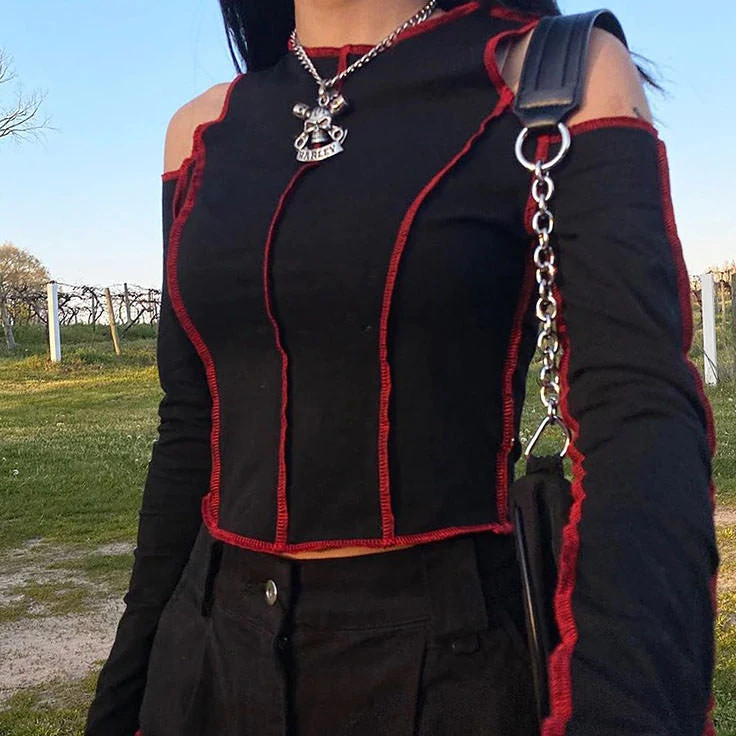 SKU: boogzel-apparel-6970119684265 Categories: Aesthetics, Clothing, GRUNGE CLOTHES, JUMPERS & KNITWEAR Tags: Black top, Boogzel, Boogzel apparel, Crop top, Cropped top, Long sleeve, Patchwork, Secret Missions Long Sleeve Top