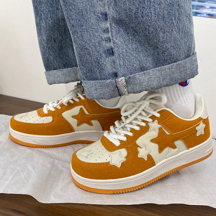 These cute sneakers have a vegan leather upper with an aesthetic shooting star design, a low ankle rise and a lace up in front ✨