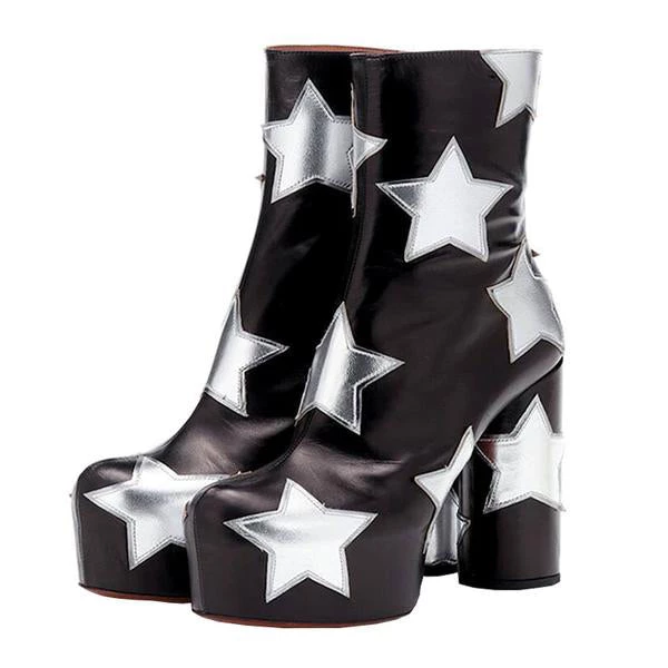 SKU: boogzel-apparel-4313499304005 Categories: Aesthetics, GRUNGE CLOTHES, MAD, Shoes Tags: Boogzel, Boogzel apparel, Leather Vegan, Star Platform Boots Silver Star Black High