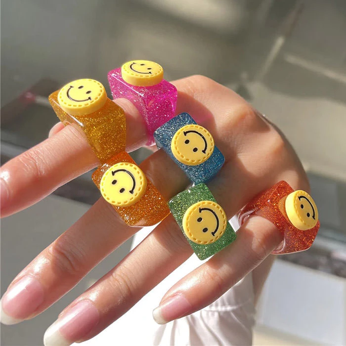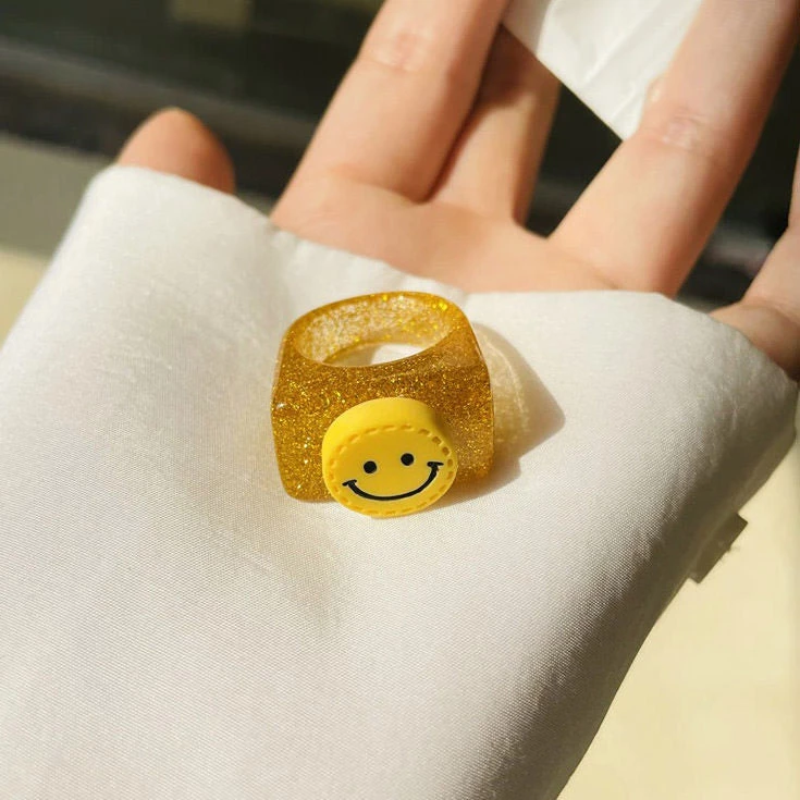 This aesthetic smiley face ring is super adorable. It is a happy addition for any outfit or occasion. You can choose with or without glitter