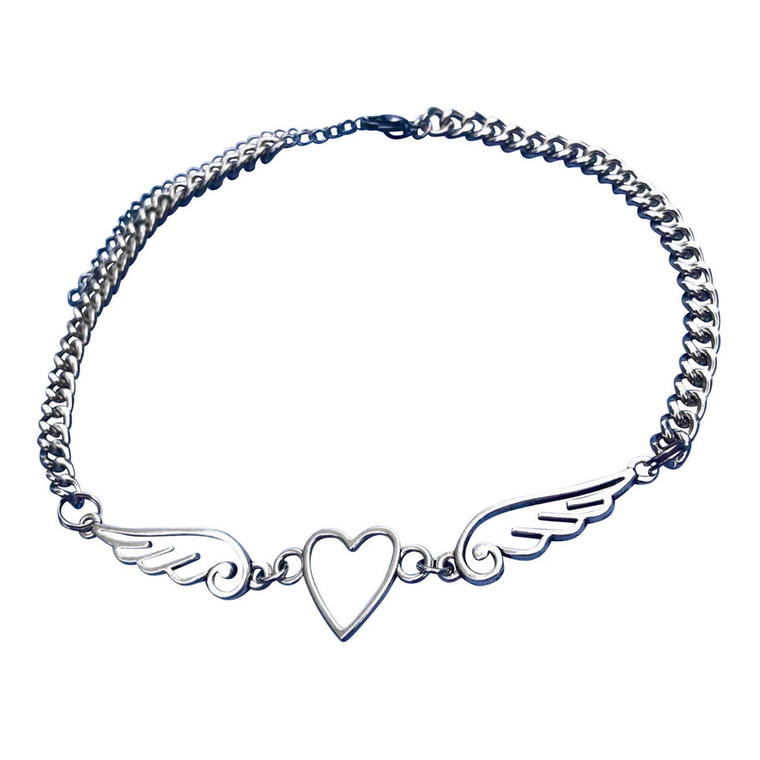 SKU: boogzel-apparel-5997452755113 Categories: Accessories, Aesthetics, FAIRYCORE, GRUNGE CLOTHES, JEWELRY, NECKLACES & CHOKERS, SOFT GIRL OUTFITS Tags: Angel, Boogzel, Boogzel apparel, Choker, Heart, Silver chain, Wings, Wings Of An Angel Chain Necklace